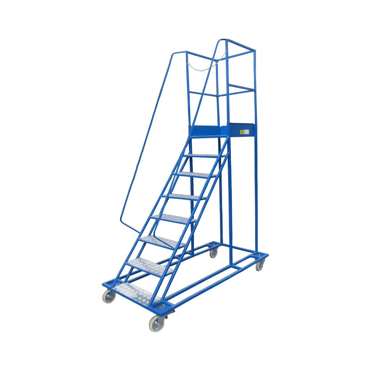 Średniej wielkości podest magazynowy, przeznaczony do użytku w sklepach, warsztatach, halach produkcyjnych czy magazynach. Umożliwia szybkie i łatwe ładowanie towarów, a jednocześnie nie zajmuje dużo miejsca.