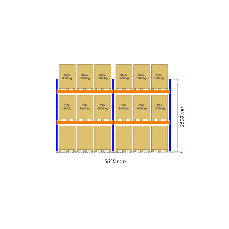 Regał paletowy B25 L=5655mm 18 palet – 500kg 0+2