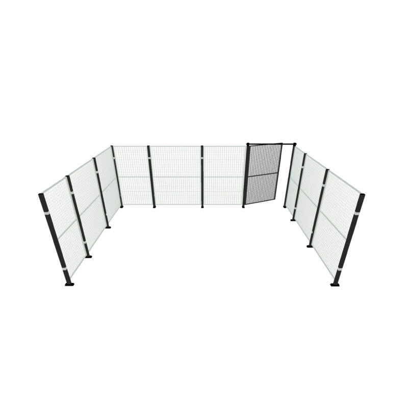 Ogrodzenie przestrzeni magazynowej opiera się na standaryzowanych elementach, takich jak panele, słupki i schematy kolorów, co pozwala na łatwe uzupełnienie istniejącego ogrodzenia.